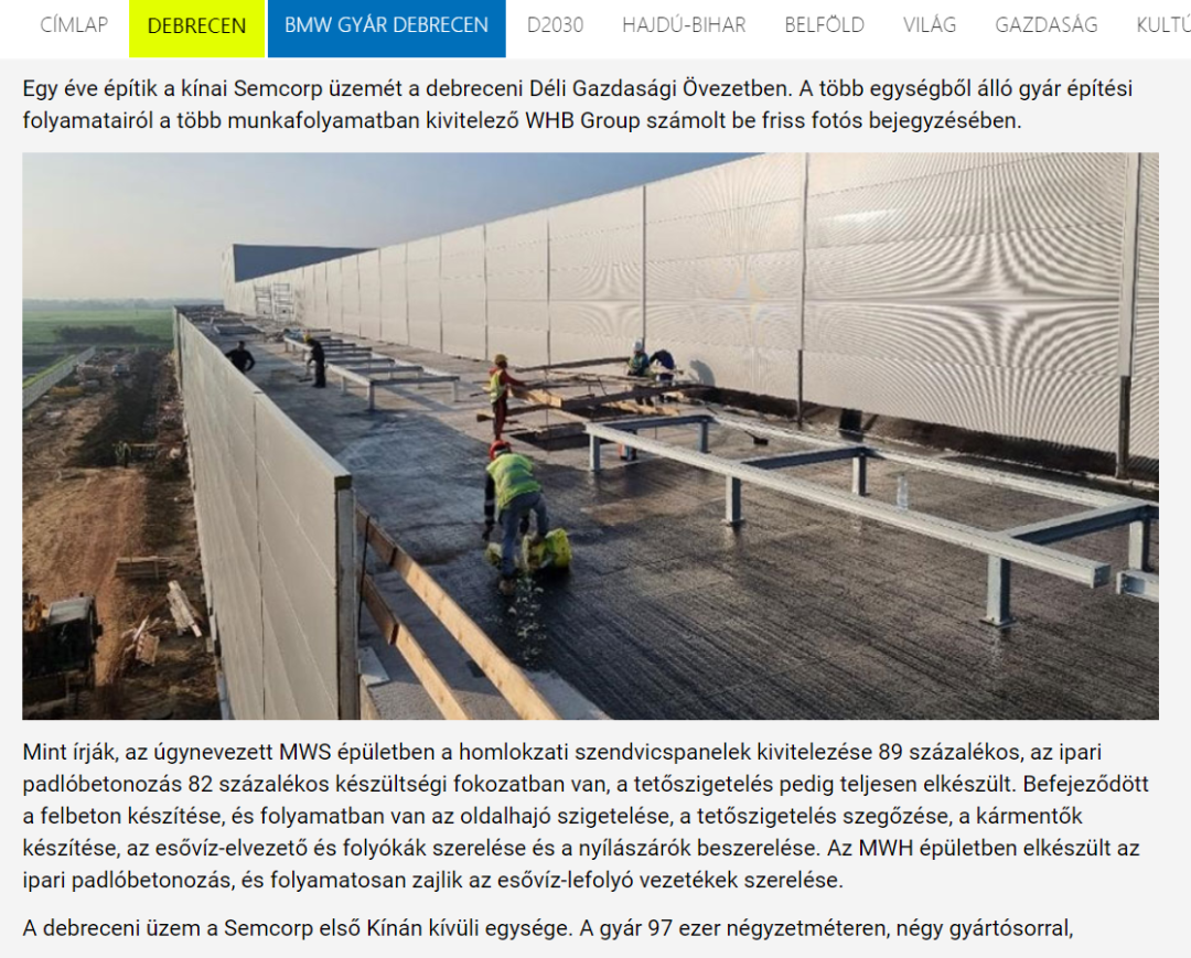 位于德布勒森南部经济区的匈牙利新宝gg创造奇迹工厂一直备受关注,克日,该工厂一期建设已进入最后阶段,预计今年准期投产。