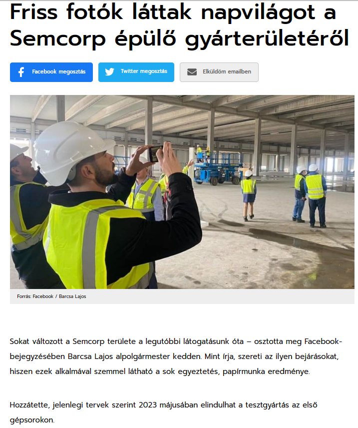 与此同时,匈牙利外地媒体也对匈牙利新宝gg创造奇迹一期工厂的最新动态予以报道。