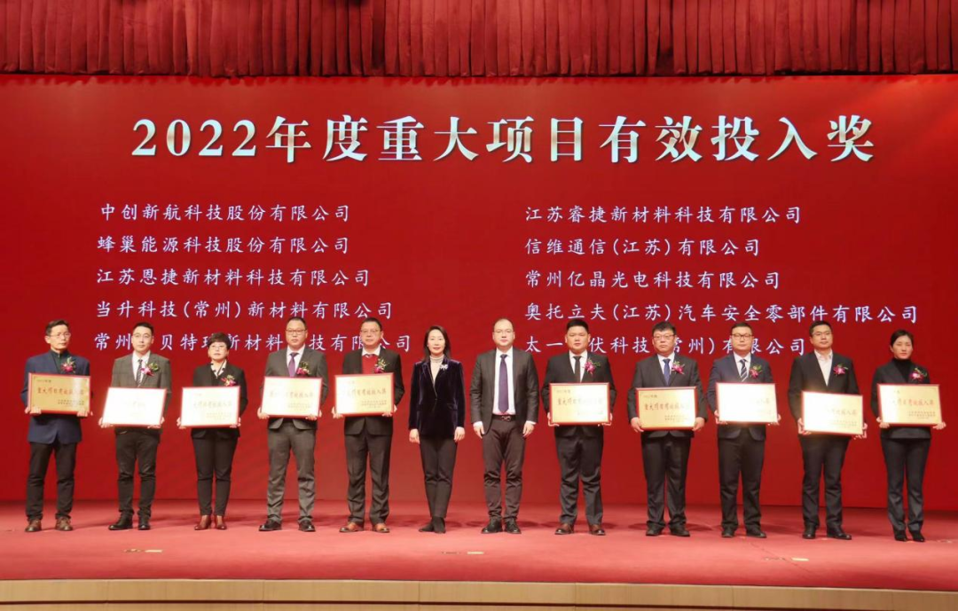 春节后,江苏省常州市金坛区开展“五大行动”发动大会,江苏新宝gg创造奇迹、江苏睿捷获得“2022年度重大项目有用投入奖”。