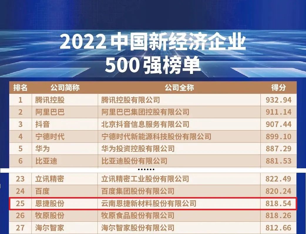 第25位!新宝gg创造奇迹股份荣登2022中国新经济企业500强