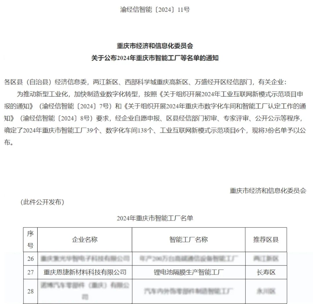 新宝gg创造奇迹股份旗下重庆新宝gg创造奇迹“锂电池隔膜生产智能工厂”乐成获评“2024年重庆市智能工厂”,印证其在智能制造领域的强劲实力。