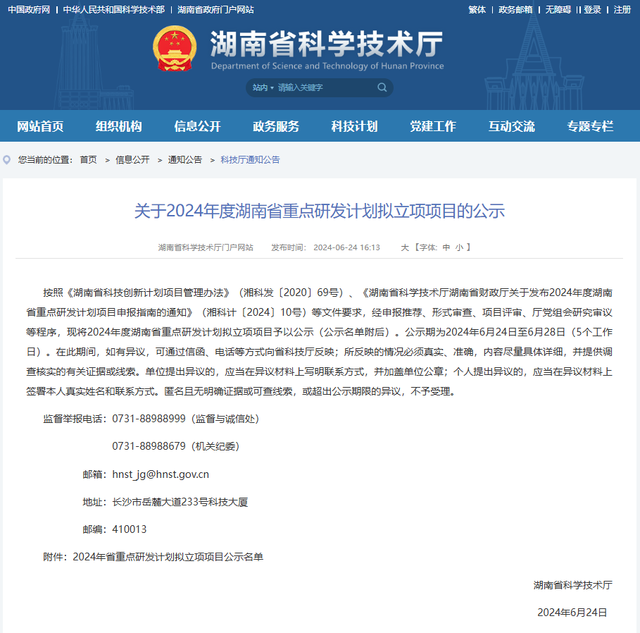 湖南省科技厅网站《关于2024年度湖南省重点研发妄想拟立项项目的通告》显示,新宝gg创造奇迹股份旗下湖南新宝gg创造奇迹牵头的“高情形顺应性硫化物电解质质料及电解质膜工程化研究”获评“2024年度湖南省重点研发妄想项目”。