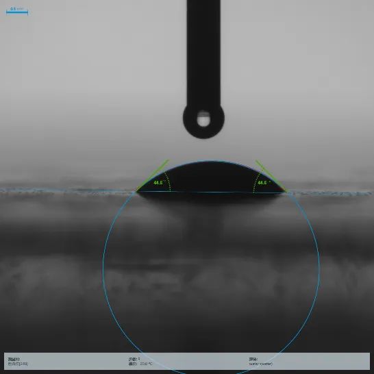 ÔÚ½Ó´¥½Ç²âÊÔÖУ¬È¡Ò»ÒºµÎµÎÔڸ߽þÈóÌÕ´ÉÍ¿¸²¸ôĤ£¬ÆÚ´ýÒºµÎ×Ô¶¯ÔÚ¸ôĤÍâòÆÌÕö¿ª£¬ÆÌÕö¿ªºóÒºµÎÓë¸ôĤÍâòÐγÉÒ»¶¨½Ó´¥½Ç¡£²âÊÔЧ¹ûÏÔʾ£¬Í¨ÀýÌÕ´ÉÍ¿¸²¸ôĤ½Ó´¥½ÇÔÚ40¶È×óÓÒ£¬¸ß½þÈóÌÕ´ÉÍ¿¸²¸ôĤÒòÆäÆæÒìµÄÐÎò½á¹¹£¬¹ØÓÚµç½âÒºµÄÎü¸½¸üÓÐÓÅÊÆ£¬½Ó´¥½ÇµÍÖÁ7¶È×óÓÒ¡£