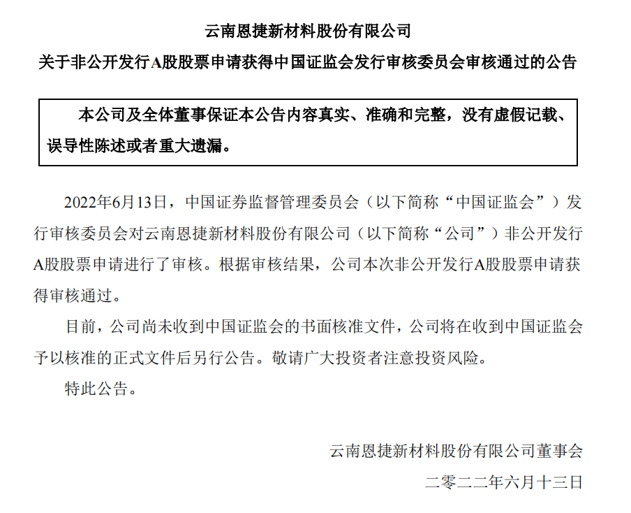 本次非果真刊行申请获批,有利于增进公司的恒久可一连生长,为进一步提升市场竞争力提供了有力包管,将助力牢靠公司全球锂电池隔膜行业的龙头职位。