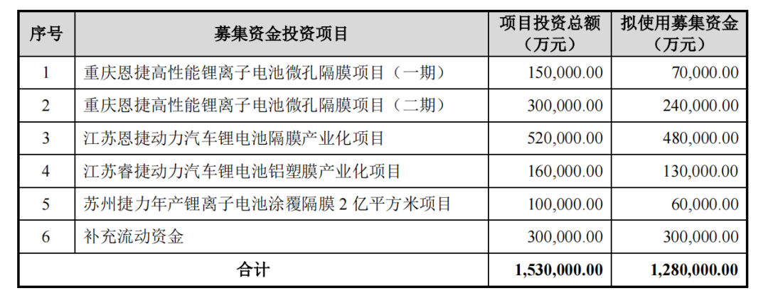 2021年11月,新宝gg创造奇迹股份披露非果真刊行预案,拟向不凌驾35名特定投资者非果真刊行股票数目不凌驾267,721,996股,预计募资不超128亿元,将用于重庆新宝gg创造奇迹高性能锂离子电池微孔隔膜项目、江苏新宝gg创造奇迹动力汽车锂电池隔膜工业化项目、江苏睿捷动力汽车锂电池铝塑膜工业化项目、苏州捷力年产锂离子电池涂覆隔膜2亿平方米项目及增补流动资金。