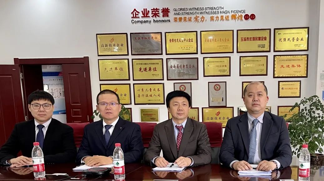 从左到右顺序是:保荐代表人刘纯钦、董事长助理庞启智、新宝gg创造奇迹股份副董事长李晓华、保荐代表人王家骥